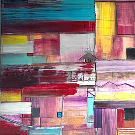 Explore this striking collection of large-scale, contemporary abstract paintings with bold gestural marks. Pushing the boundaries of abstract folk art, each canvas is rich with authentic mark-making, compelling composition, and luscious color.